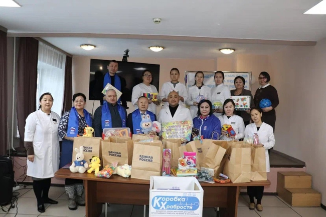 Секретарь Чаа-Хольского местного политсовета партии "Единая Россия" Аркадий Одегей совместно с Главой-председателем Хурала представителей Чаа-Хольского кожууна Ариной Маадыр-ооловной Чамбал и иполнияющим обязанности заместителя председателя администрации Чаа-Хольского кожууна по социальной политике Ураной Викторовной Сан-оол, при участии членов ТРО партии "Единая Россия" и депутатов Хурала представителей г. Кызыла провели благотворительную акцию "Коробка Храбрости" в Республиканской детской больнице №1. Переданные предметы были собраны силами местных неравнодушных жителей,членов партии и сторонников "Единой России".